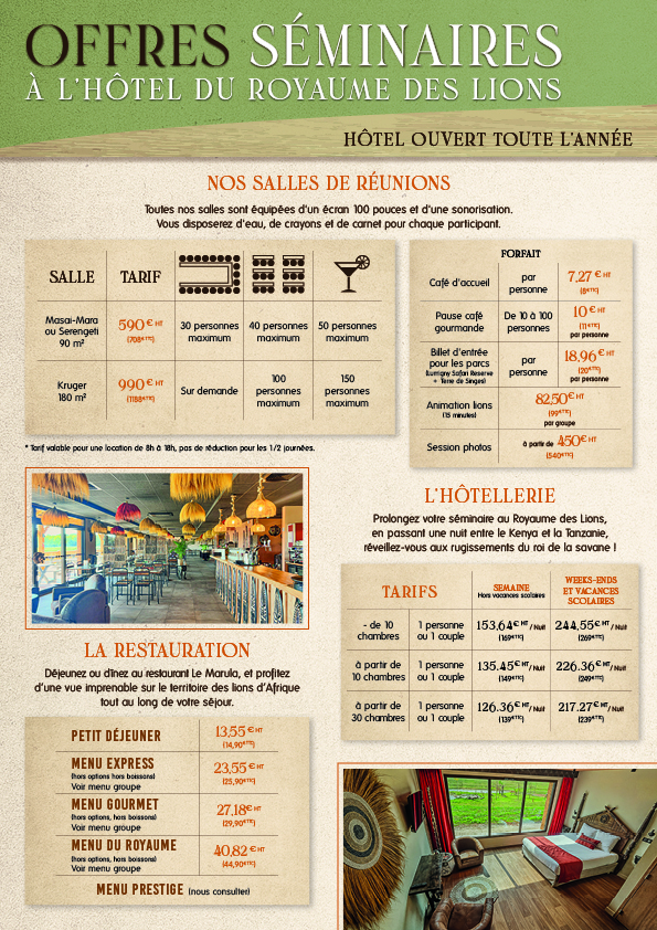 Face au plus grand habitat de lions en Europe (40 000 m2), profitez d’un environnement prestigieux et inspirant avec :
